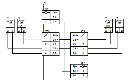 транзита и подключения 2-х проводных интерфейсных линий связи (RS485 или M-BUS) к 4-м счетчикам и является пассивным соединительным устройством.