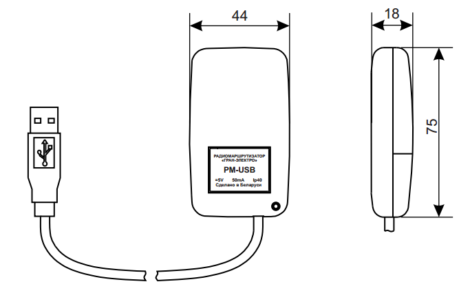 Технические характеристики USB радиомаршрутизатора PM-USBt: