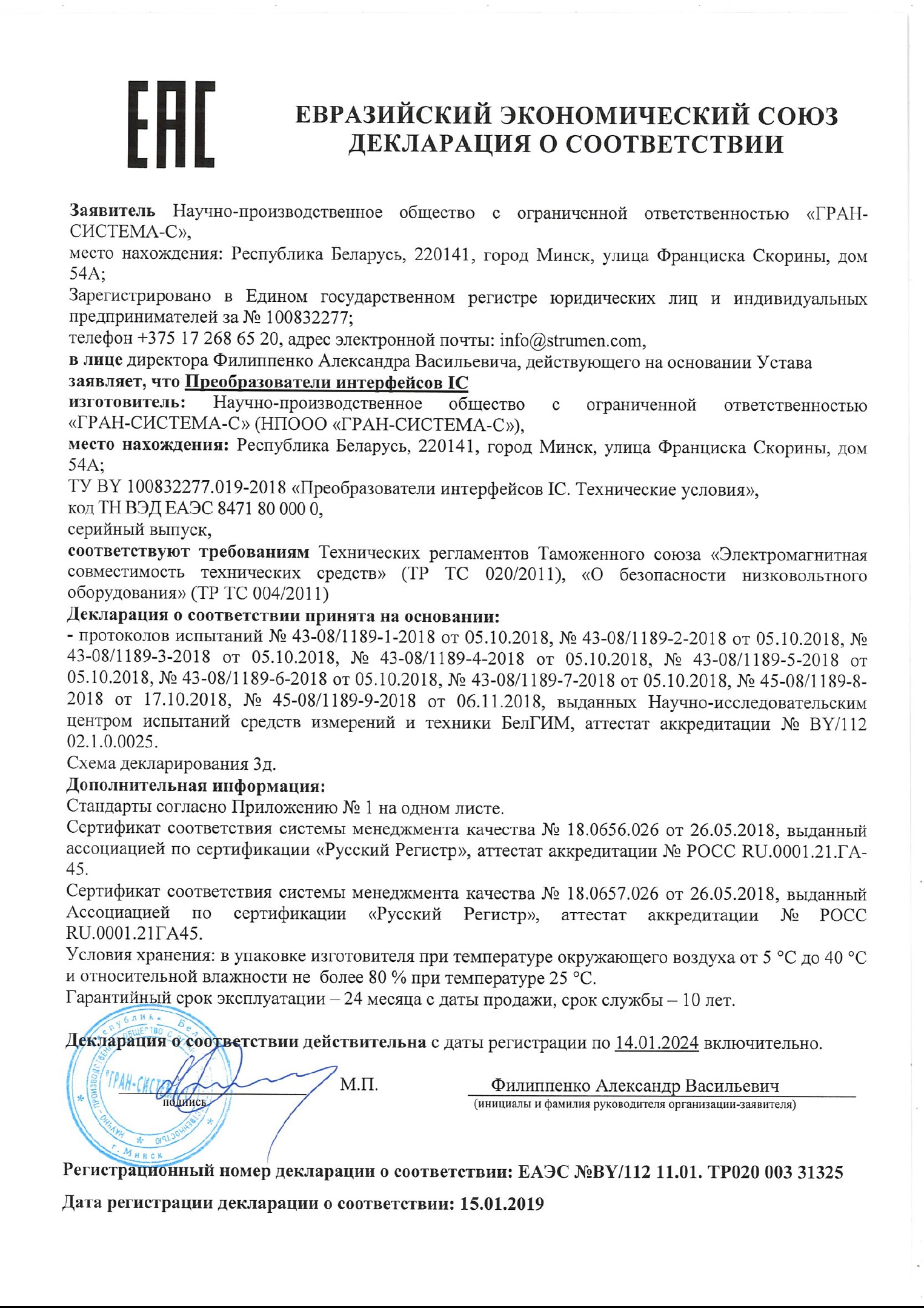 Юридический адрес : 230001,РБ, г.Гродно ул. Титова 24