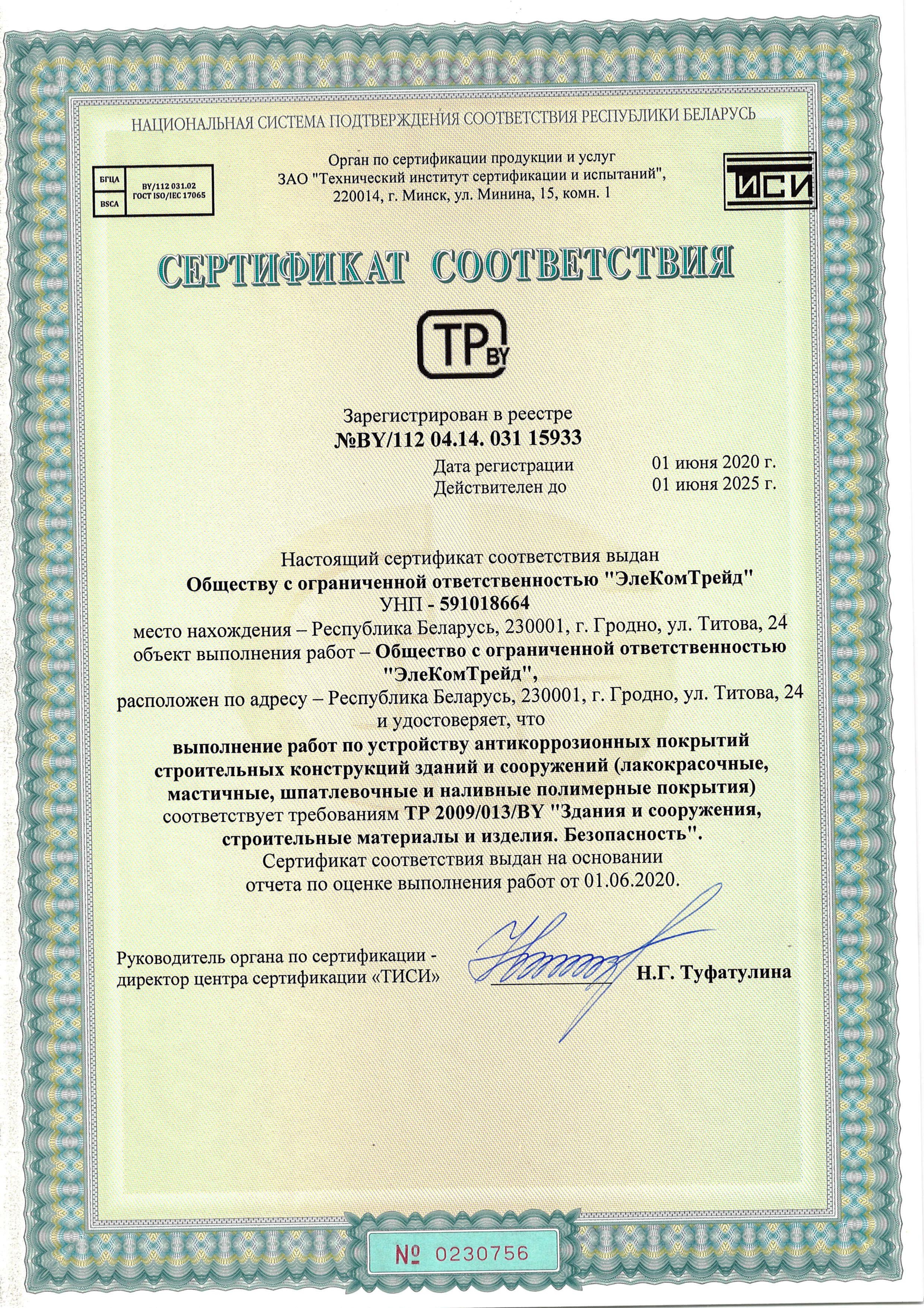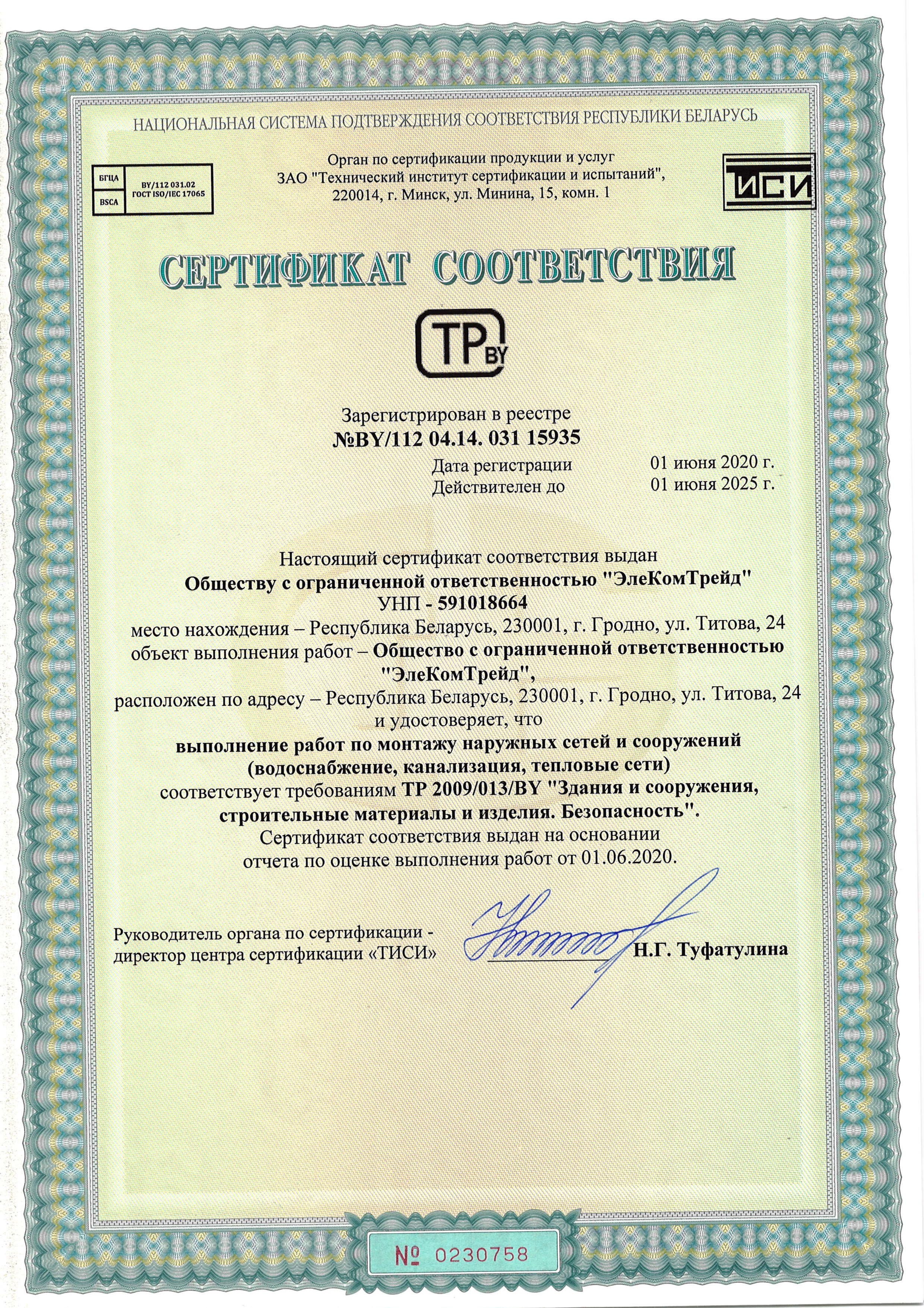 УНП 591018664 ОКПО 303426954000